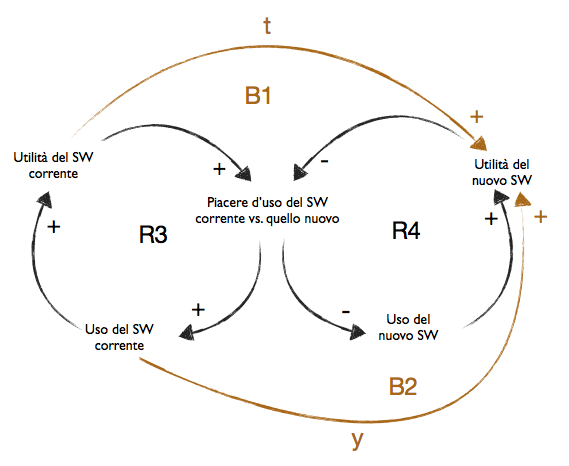 – Flusso y: più il vecchio SW viene usato, più viene percepita l’utilità del nuovo.